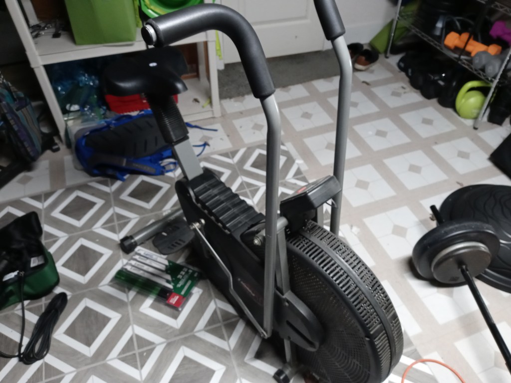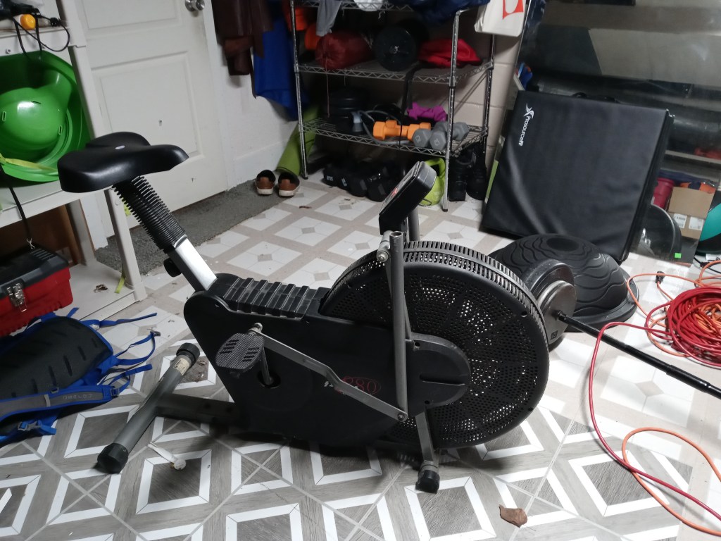 In the meanwhile, I took my mother-in-law’s old fan exercise bike that was in my basement: